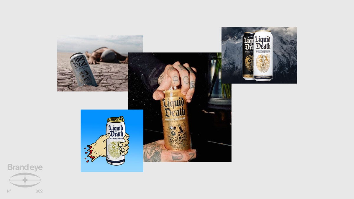 Then there’s perhaps the most audacious category inversion, one which proves the power of this type of branding by taking it to its logical extreme. Water branded as pure, soft, and gentle, using snow-capped mountains and blue/green plastic was the industry playbook. How do you sell a free commodity? You stop selling water and start selling a rebellious identity.