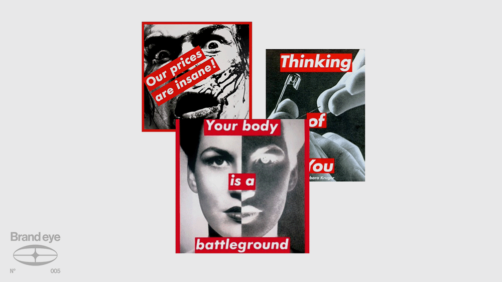 Supreme, likewise, looked to Barbara Kruger for their iconic red box logo. Kruger made work that explicitly critiqued consumerism and capitalism. She may not have been aligned with Supreme’s values, but her design vocabulary was exactly what they were after.
